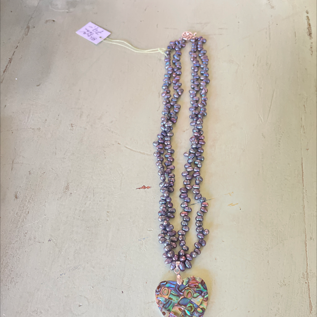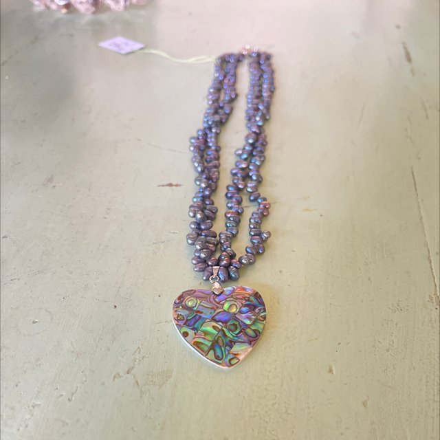 Natürliche Süßwasser Perlen Collier, 2-reihig, mit Perlmuttherz.