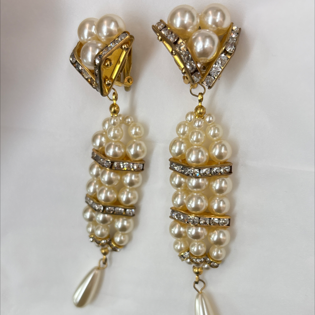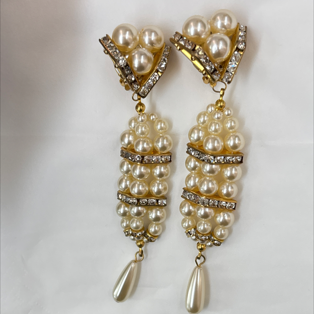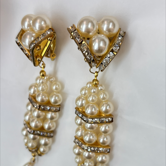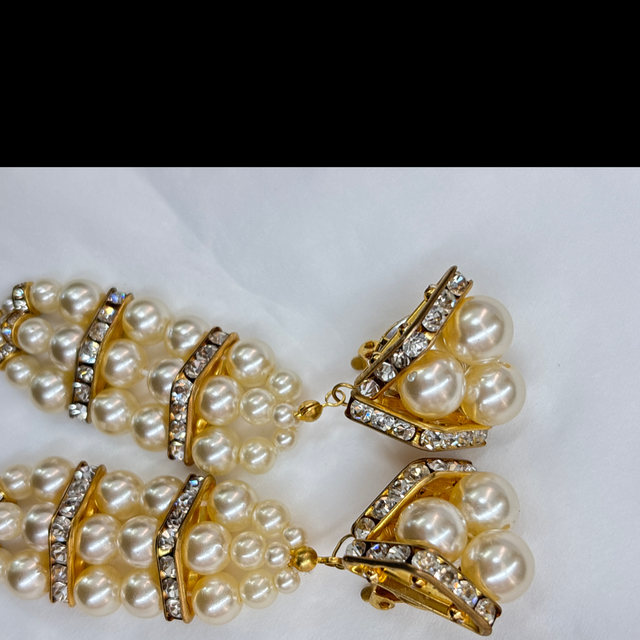 Ohrclips Bühnenschmuck Chanel Stil Perlen Strass
