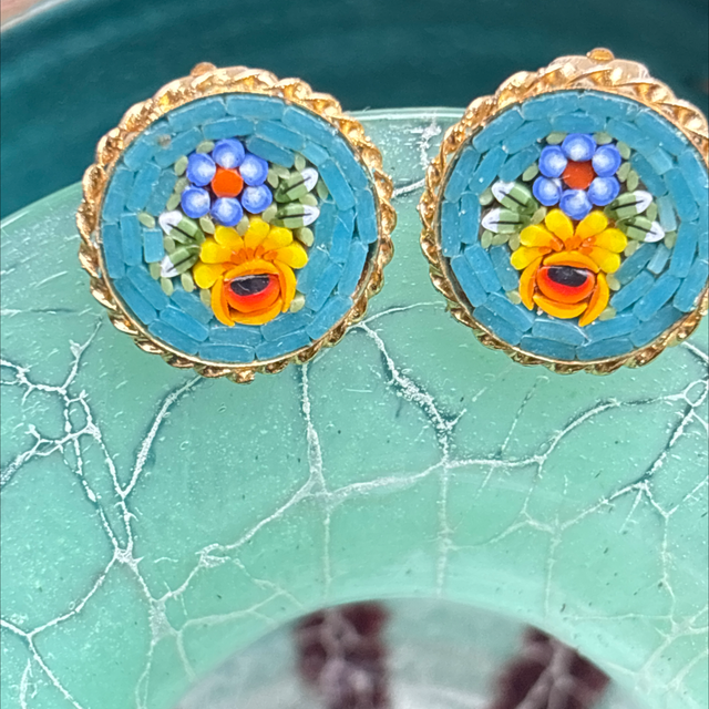 Ohrclips mit Micro Mosaik/ Blume/ Made in Italy