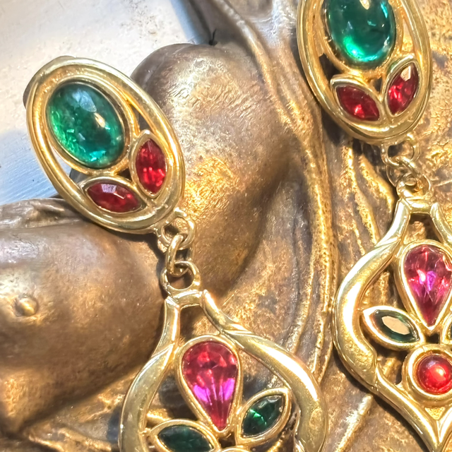 Ohrclips in Gold aus Messing mit facettierten Glassteinen.
