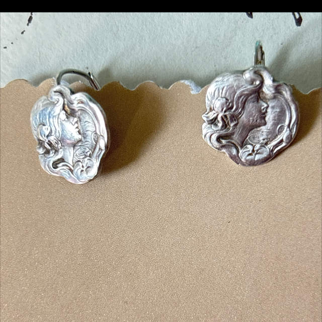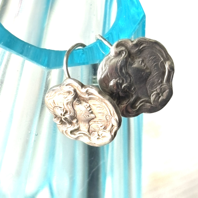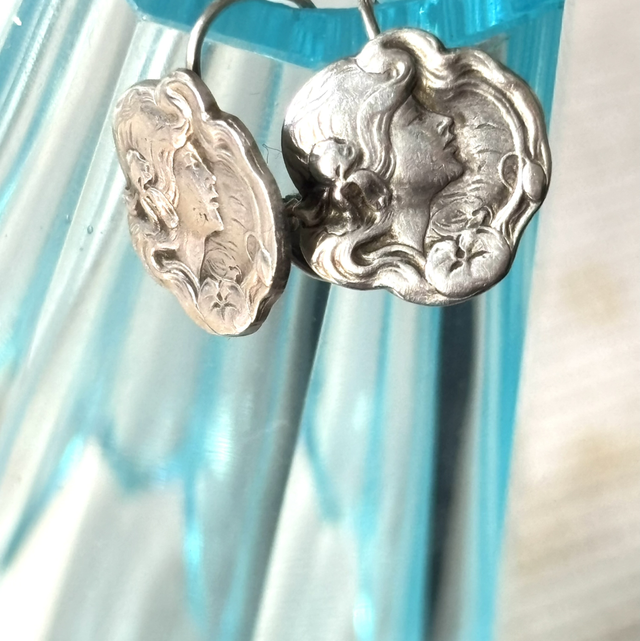 Ohrringe mit Jugendstil Frau / Nymphe Motiv 800er Silber B: 1,5 cm H: 1,3 cm