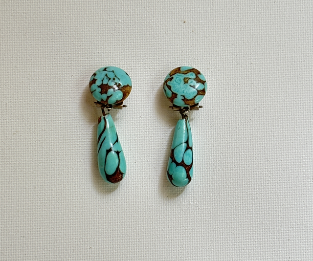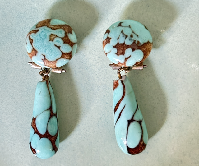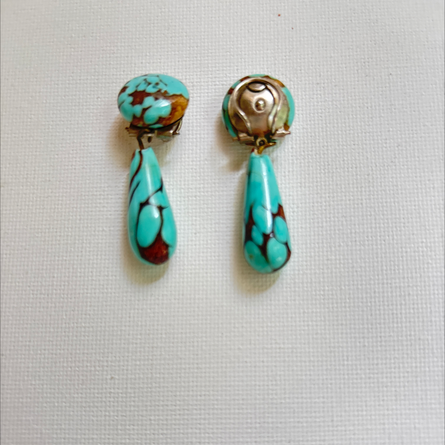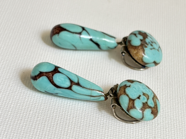 Türkise Ohringe Vintage Ohclips 1959er Jahre. Muranoglas marmorisiert