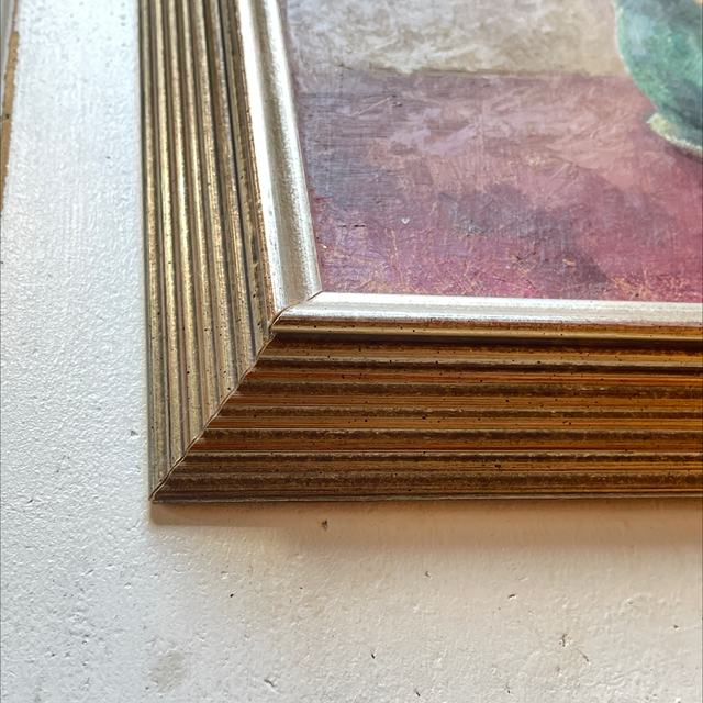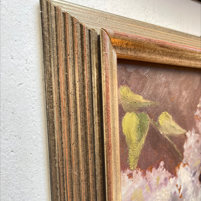 Kunstwerk Flieder Ölgemälde mit versilberter handgefertigter Holzleiste