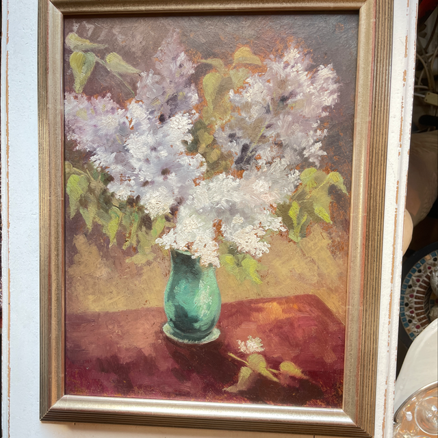 Ölgemälde Blumenbild Weißer Flieder aus Hessen