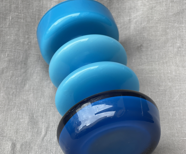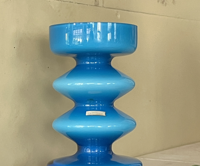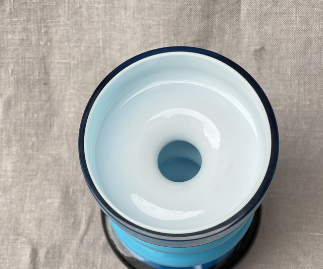 Friedrich Glashütte Opal Glas Überfangglas Mid- Century Glasvase Blau