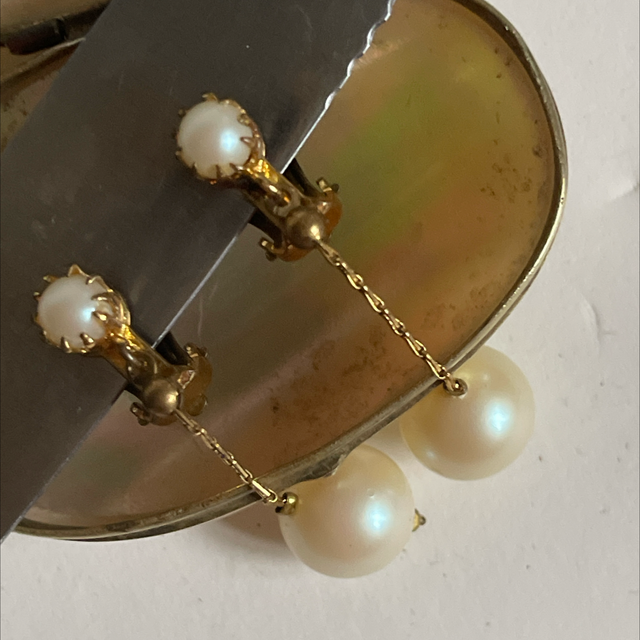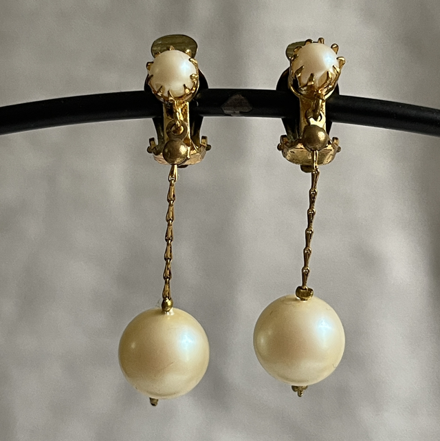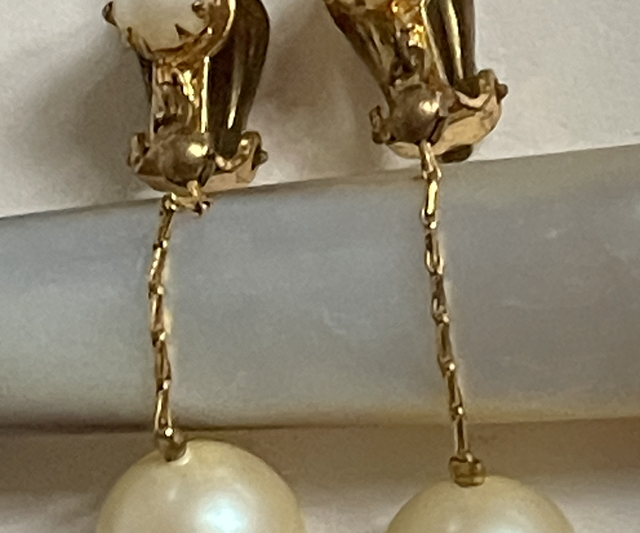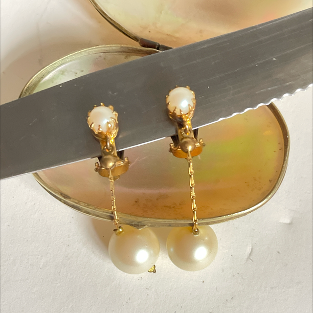 Perlen Ohrclips Chanel-style Messing L : 5 cm