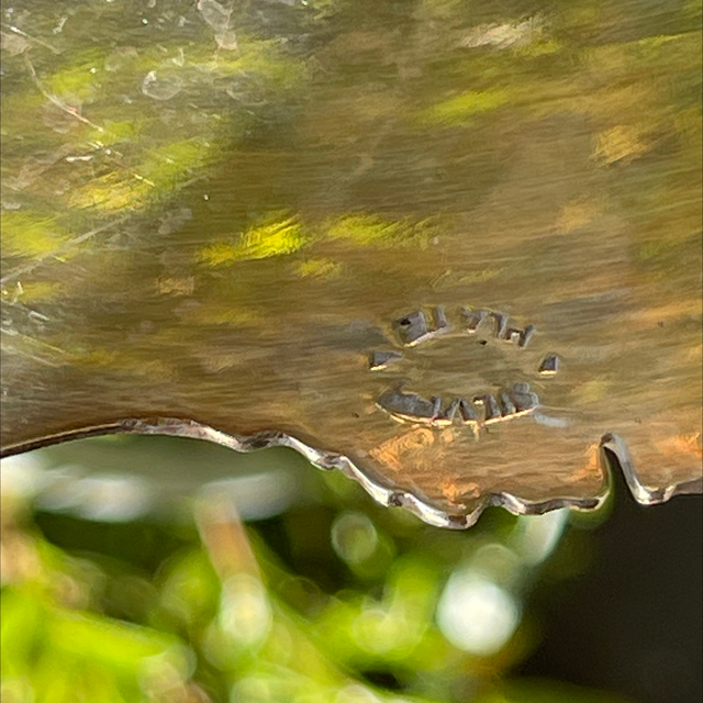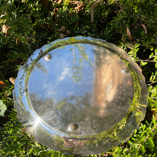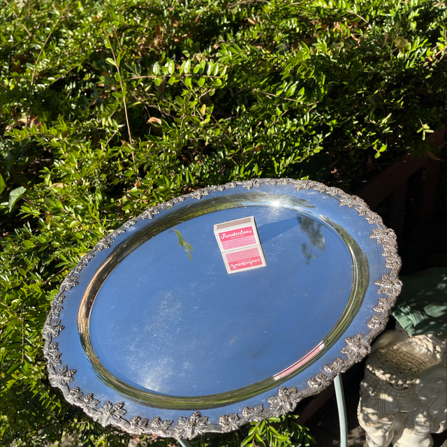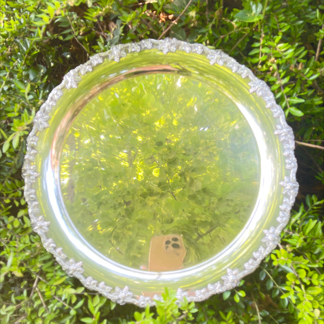 Antikes versilbertes rundes Tablett mit Blätterornamenten