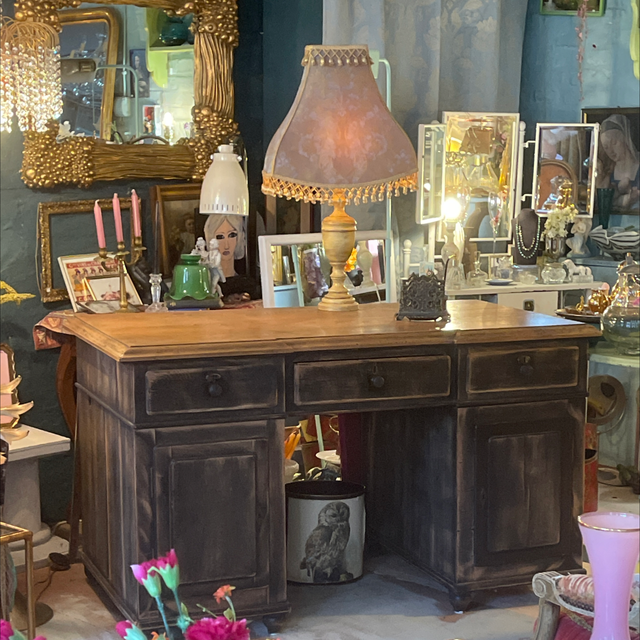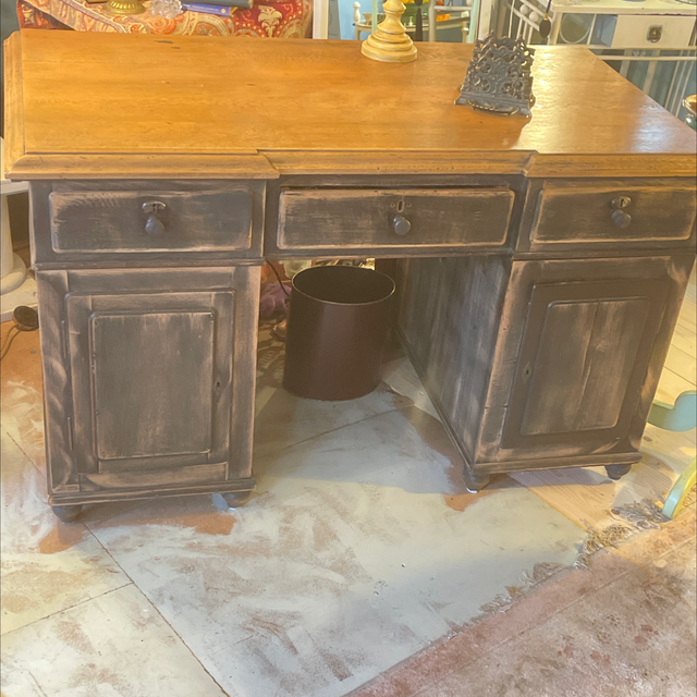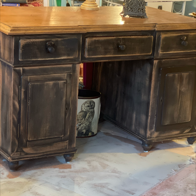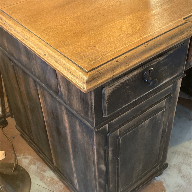 Upgecycelter Schreibtisch in dunkel gebeizter Eiche , komplett restauriert.
