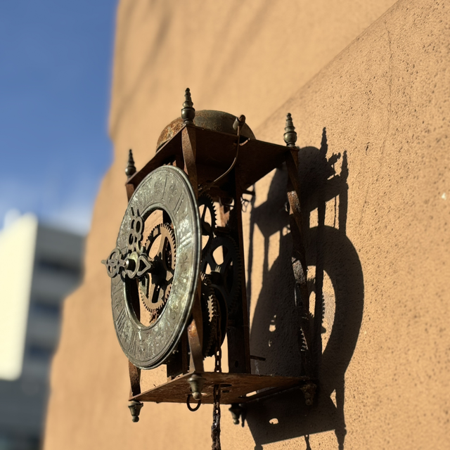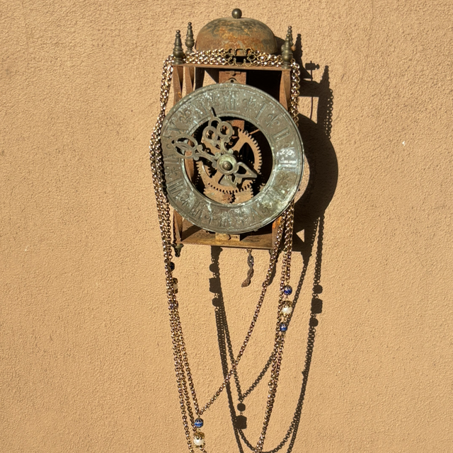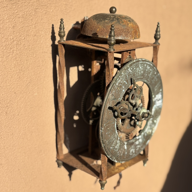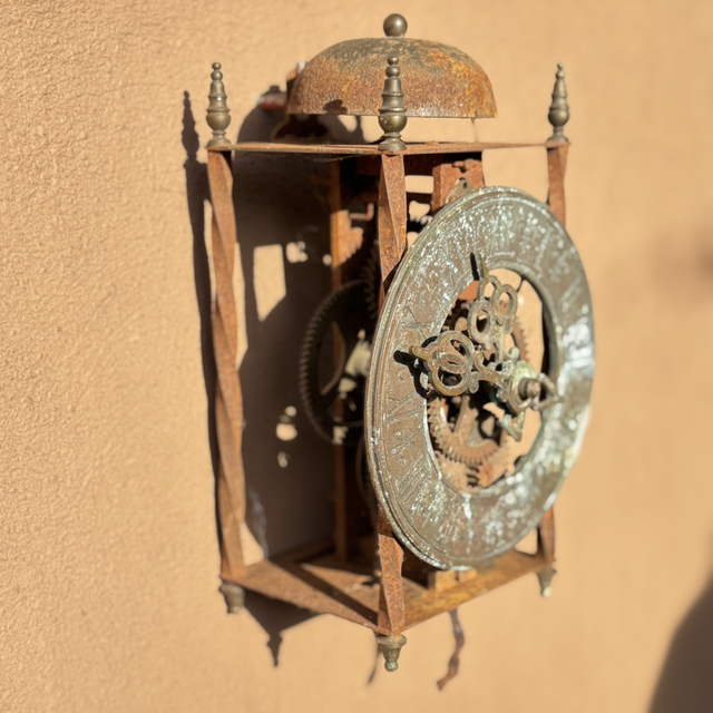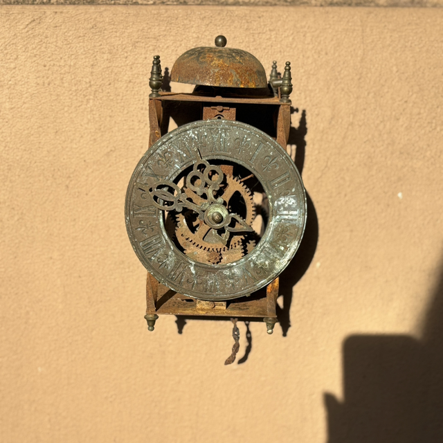 Antike Uhr Metall mit viel Patina . Reine Deko