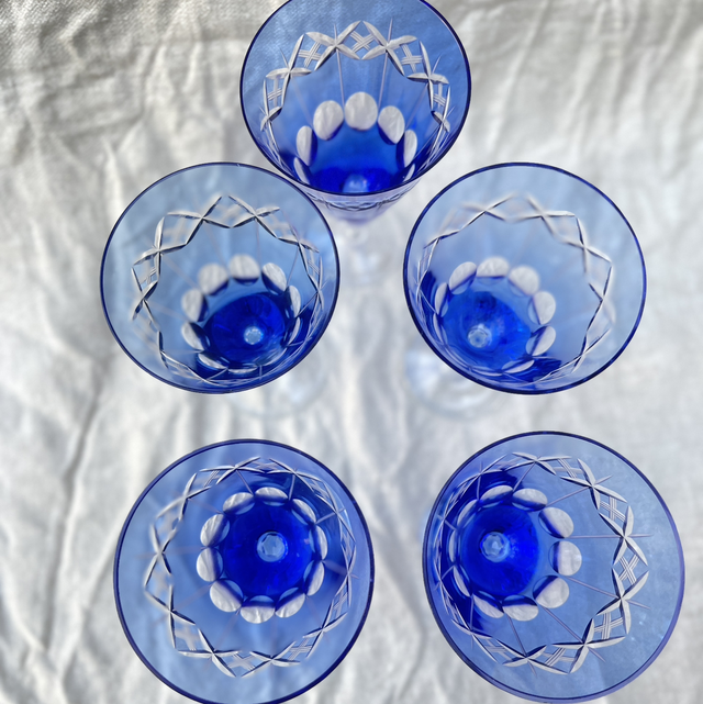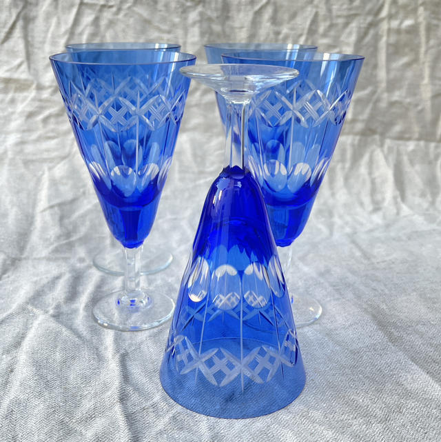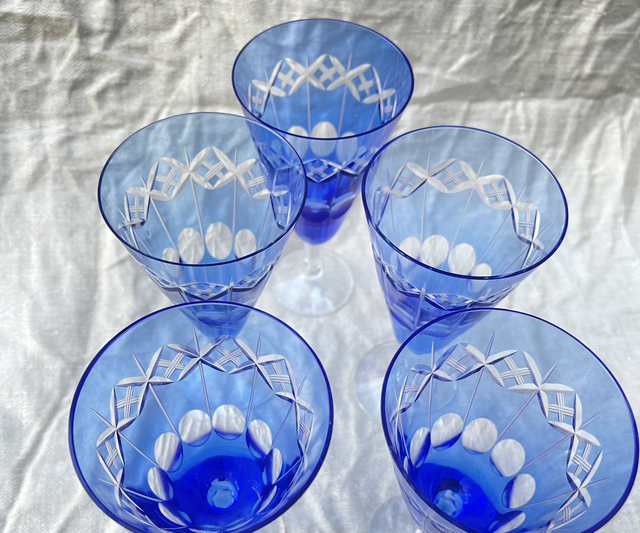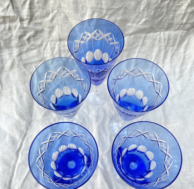 Blaues Sekt Glas Kristall handgeschliffen. Preis bezieht sich auf 1 Glas .