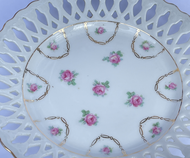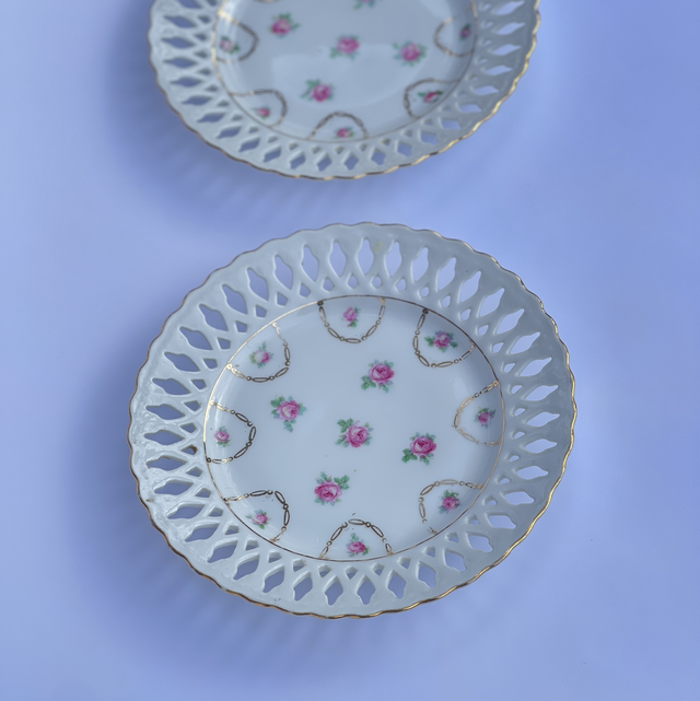 Set von 2 antiken Porzellantellern mit Rosen