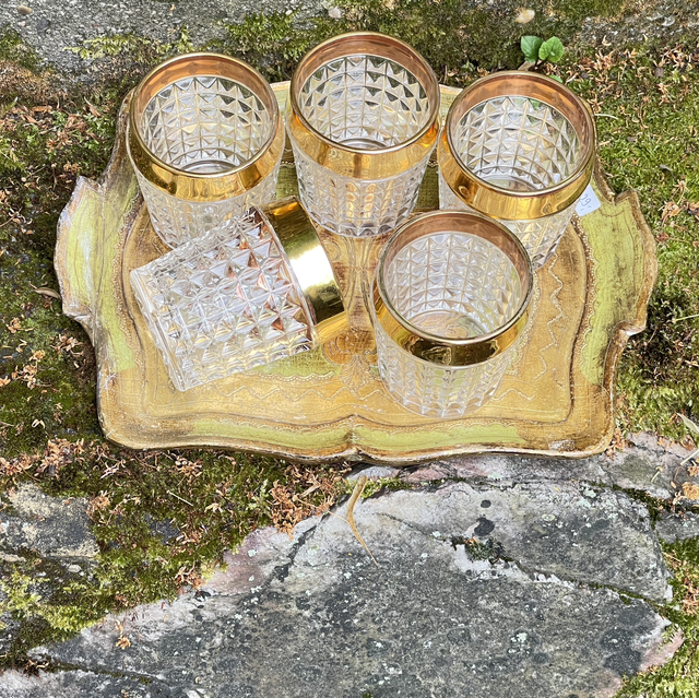 Set von 5 Gläsern aus Teelichter mit Goldrand