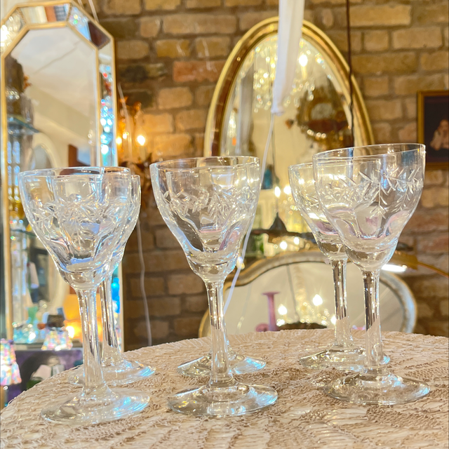 Diese 6 wunderschönen, geschliffenen Gläser sind von Hand gefertigt. Art Déco Gläser bei Freudenhaus Interieurs