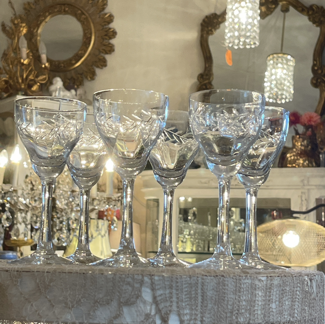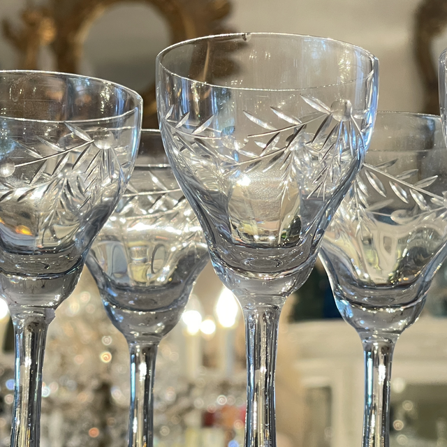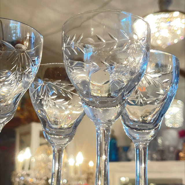 Set von 6 Kristallgläsern mit wunderschöner eingravierter Ranke