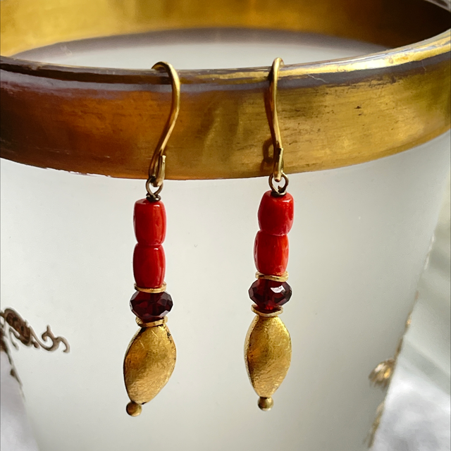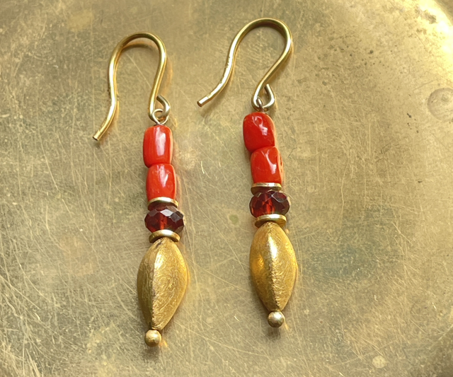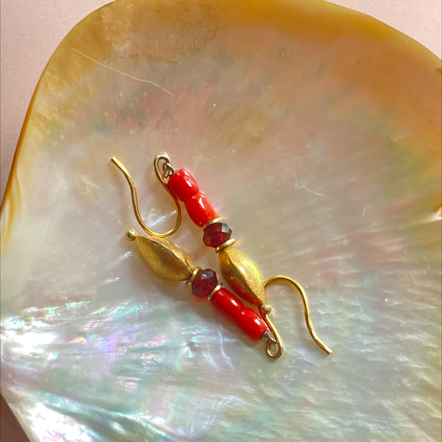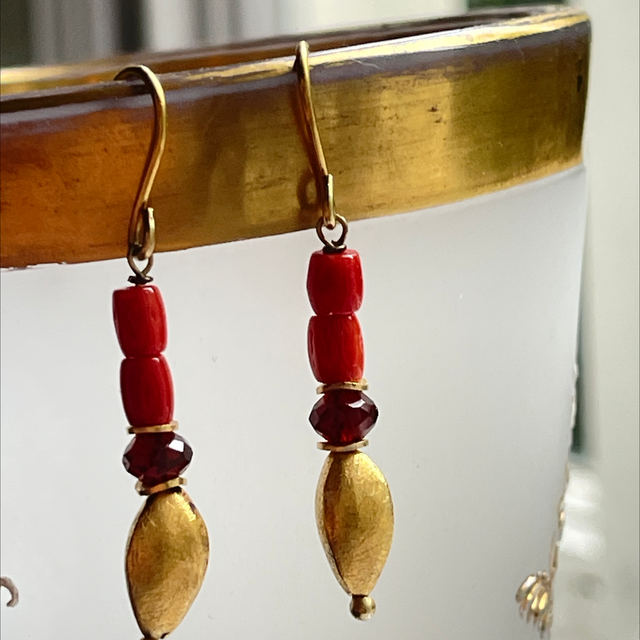 Gold Granat Koralle Ohrringe