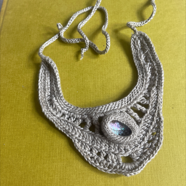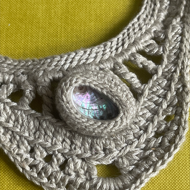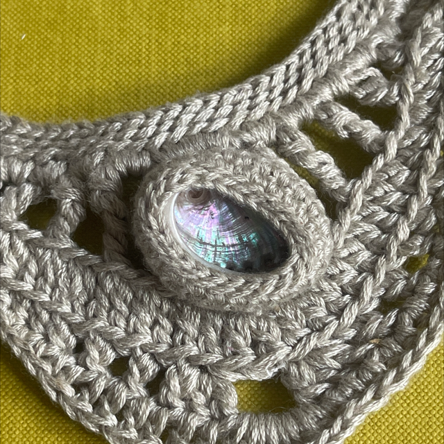 Handgefertigte Häkelkette mit kleiner Venus Muschel