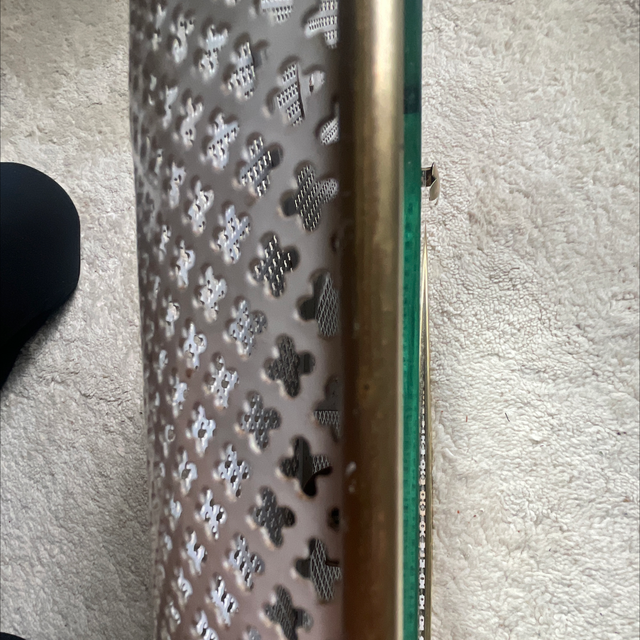 Beleuchteter ovaler Wandspiegel Lochmettal Designerspiegel aus den 1960er Jahren.Von dem berühmten französischem Designer Mathieu Mategot. Original und unrestauriert 2-flammig E 14 Watt mit kleinen Gebrauchspuren der Zeit ( s.Fotos) H: 63 cm B: 44 cm T: 8 cm