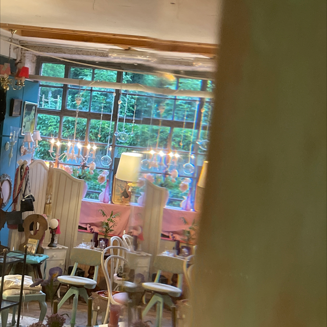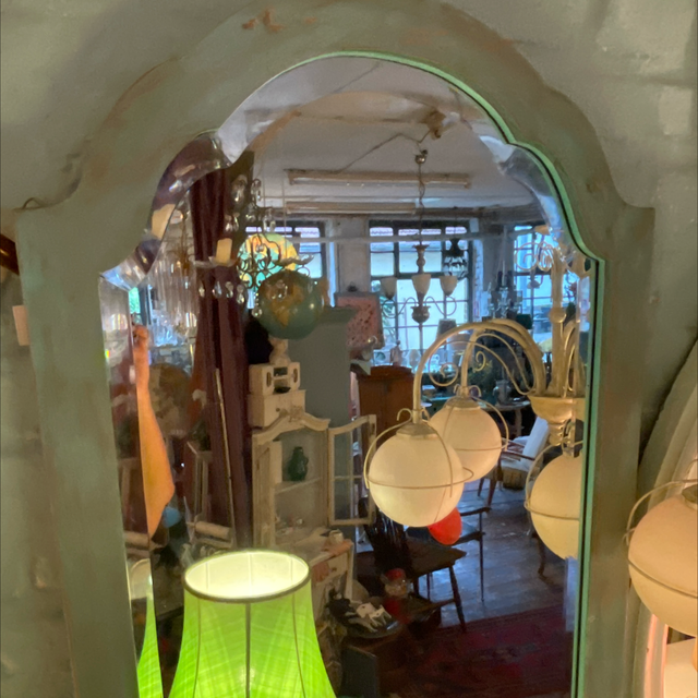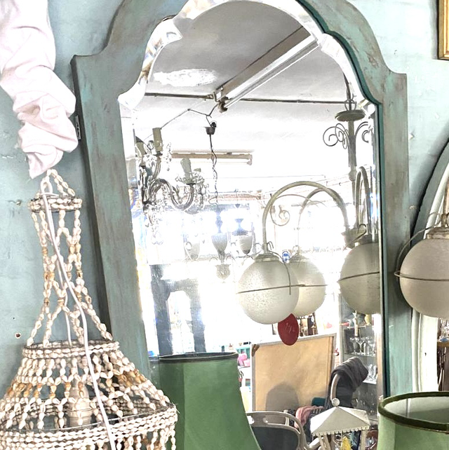 Spiegel blauer Holzrahmen antik mit Facettspiegel