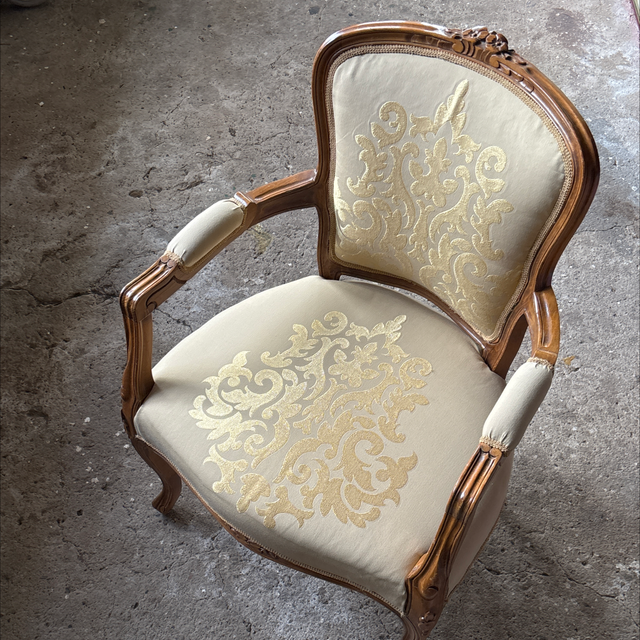 Armlehnstuhl Louis Philippe Stil Medallion Stuhl mit Seidenstoff gepolstert