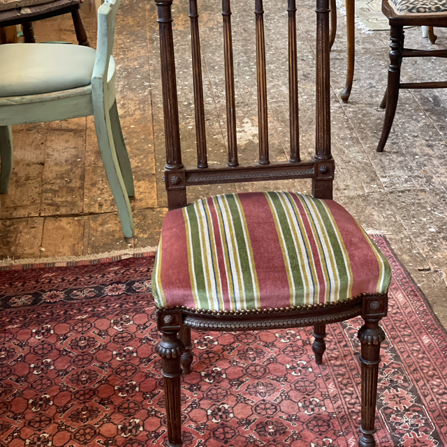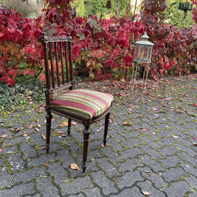 antiker Stuhl , Holz, gepolstert, Eiche geschnitzt