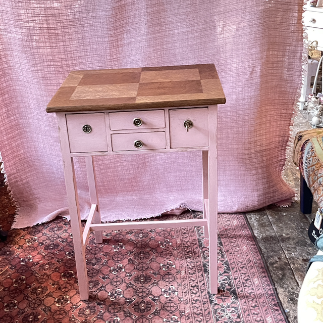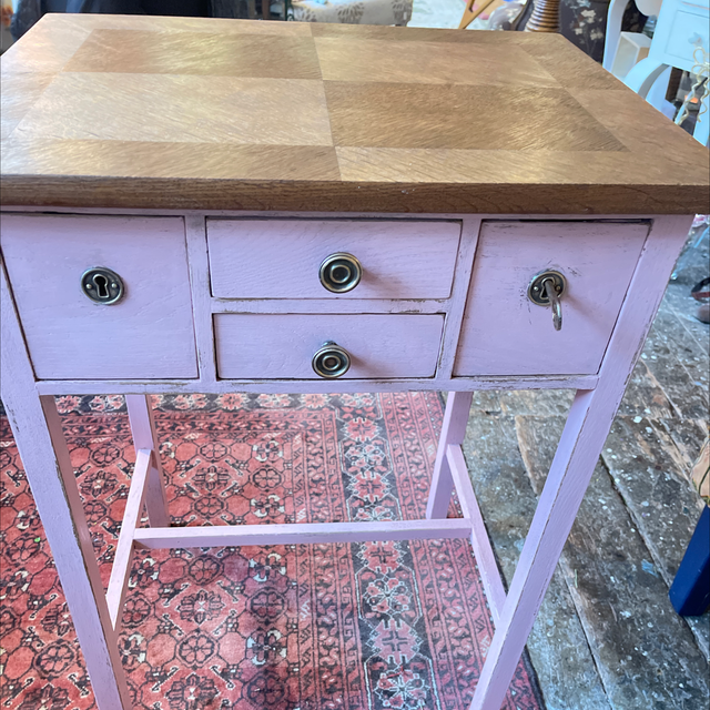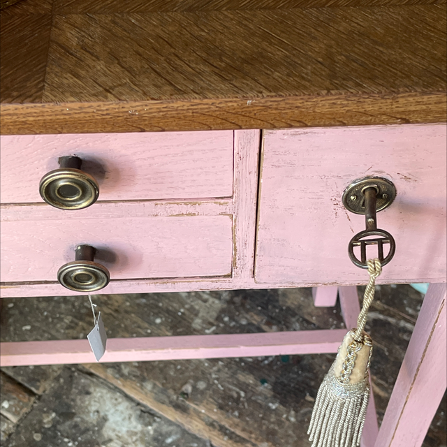 Rosa Tisch Schmucktisch Wandtisch Nähtisch #upcycling Antiker Tisch aus Eichenholz mit 4 Schubladen und 1 Schlüssel