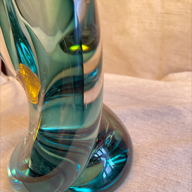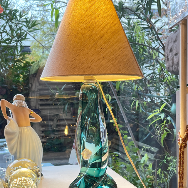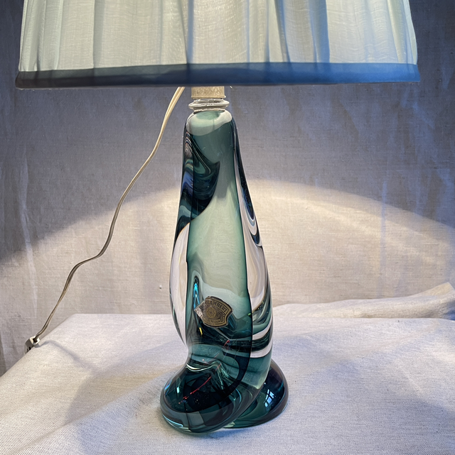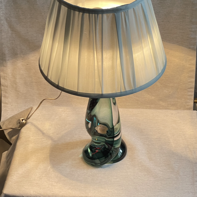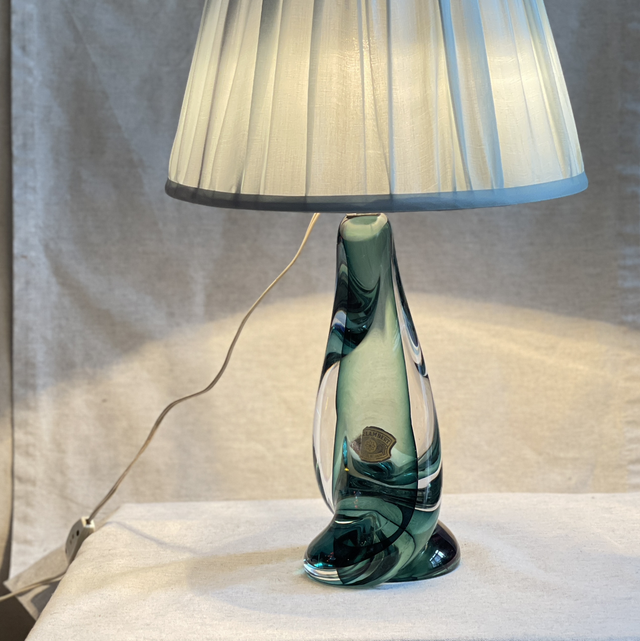 Val Saint Lambert Kristall handgefertigter Glasfuß Objekt Tischleuchte in Smaragd Grün signiert