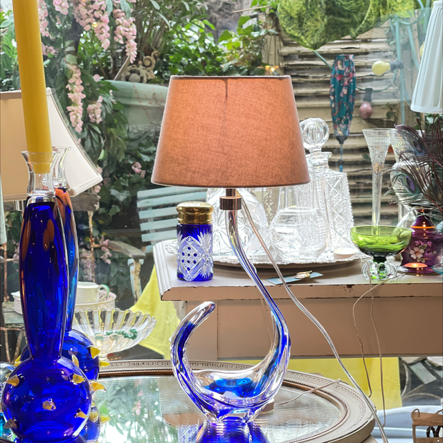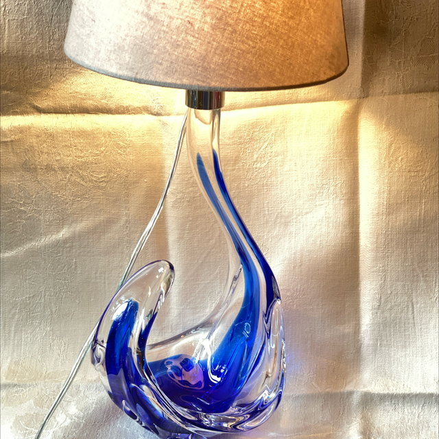 Tischleuchte Muranoglas Kristallglas in Blau / neu vernickelt und neu elektrifiziert. E14 Watt