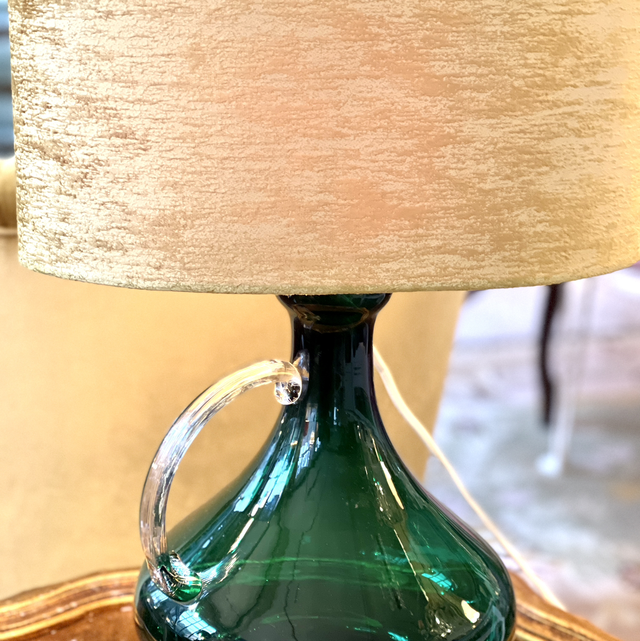 Glasfussleuchte in Italien hergestellt Einzelstück aus einer Glashütte Petrolgrün mit klarem Glas griff handcut