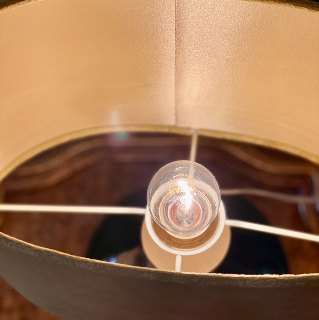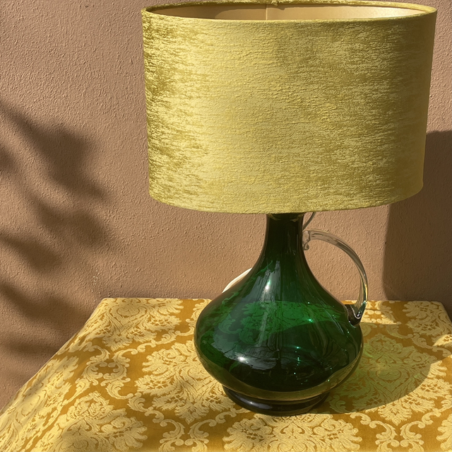 Tischleuchter Grün/ gelb /Glaskunst Samtschirm/ Glashütte /Mid-Century