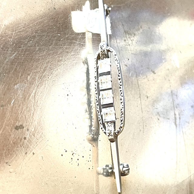 Art Déco Silber Brosche L: 6 cm B: 1 cm
