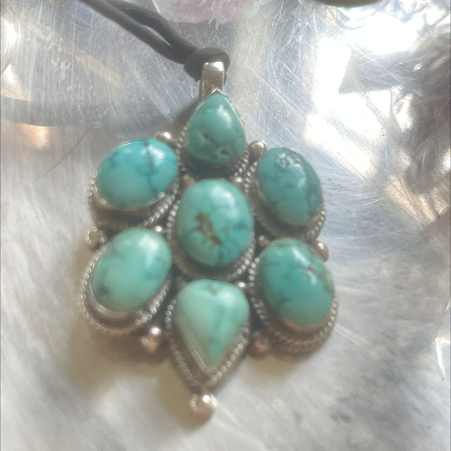Türkis Stein Silber Amulett/ Anhänger/ native Americans. 925er Silber Navajo. L: 7 cm B: 4 cm