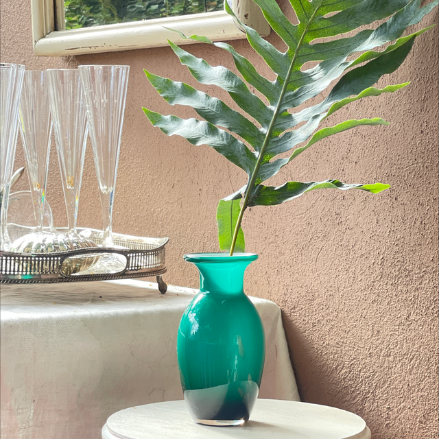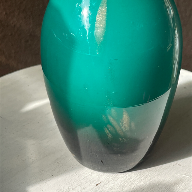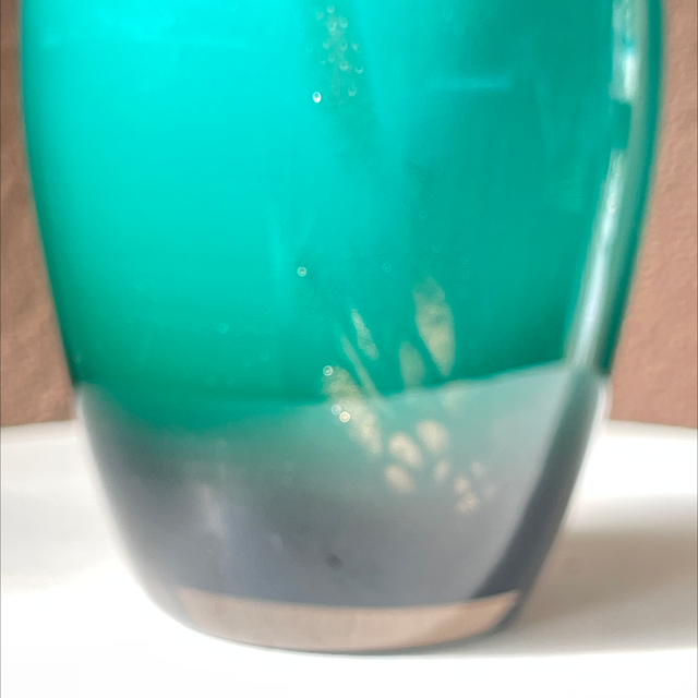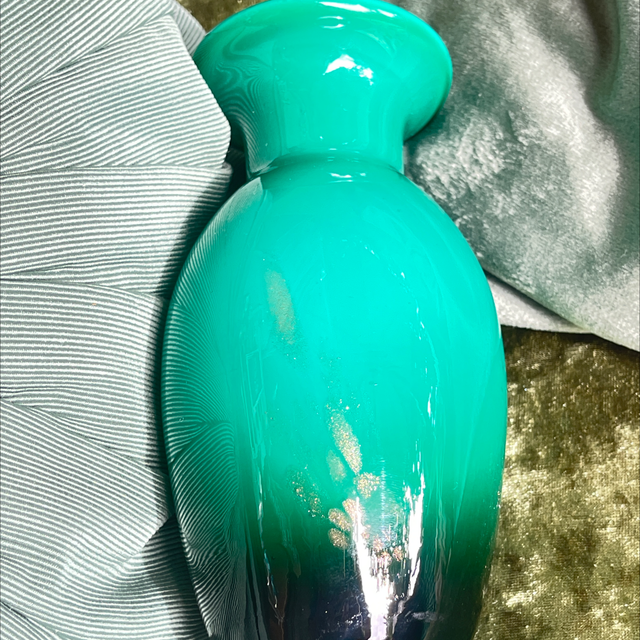Bauchige türkise Opalglas Vase Überfangglas mit Goldspuren H: 15 cm B: 8 cm