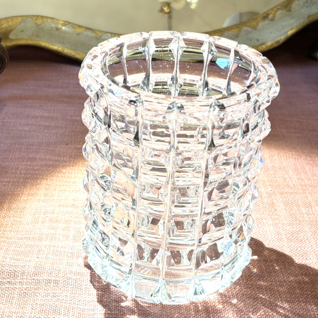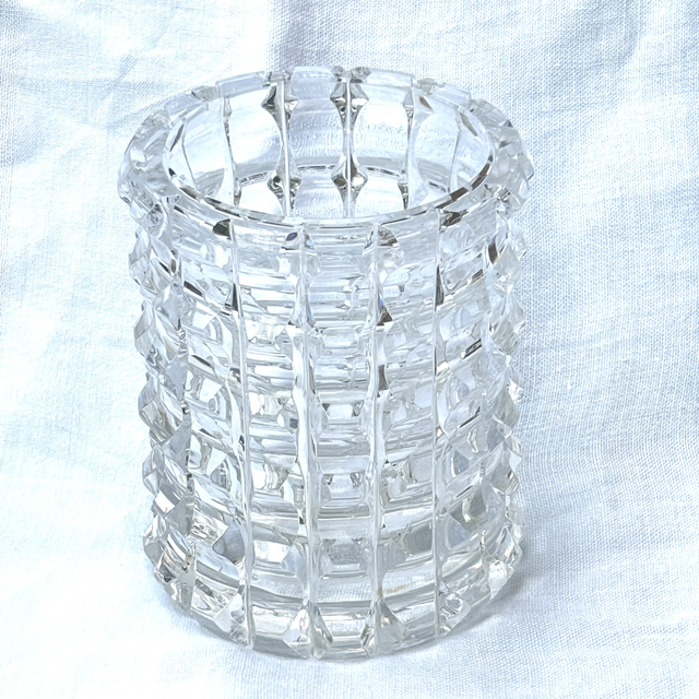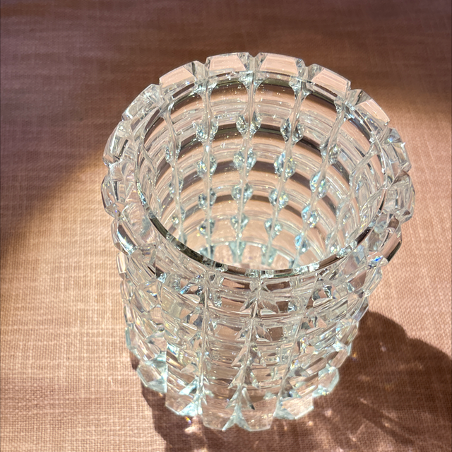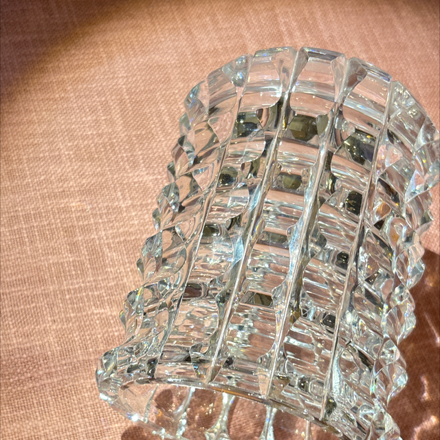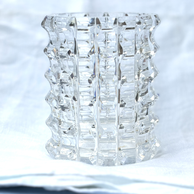 Vase aus Kristall Glas , durchsichtig mit geschliffener Struktur von Rosenthal . Handgefertigt und gemarkt .