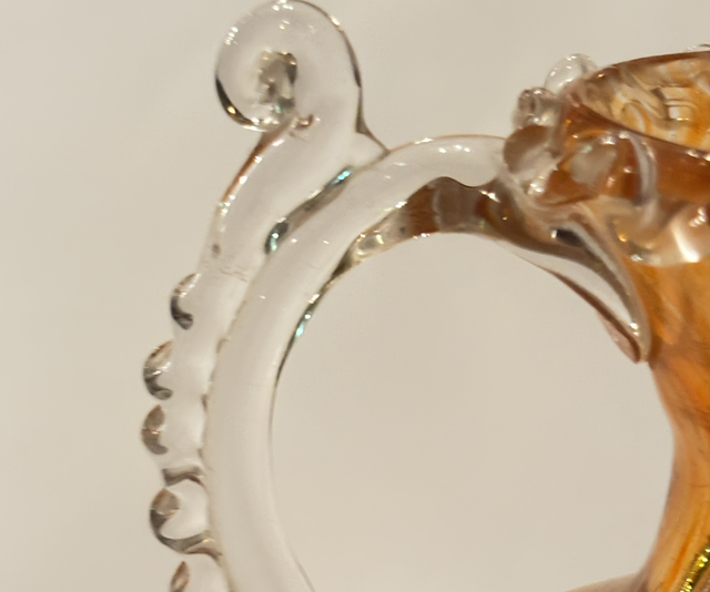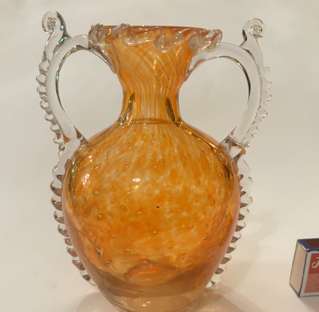 Venezianische verzierte, orangefarbene Vase , handgefertigt. H: 16 cm , B: 13 cm