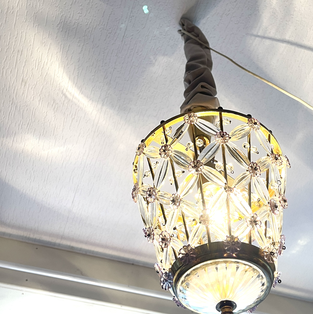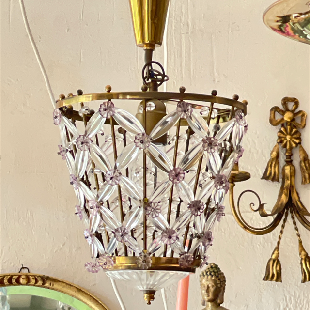 Floraler Kronleuchter mit Glaselementen von Palwa 1960. 1 x E27 Watt Kronleuchter mit Patina H: 40 cm B: 20 cm