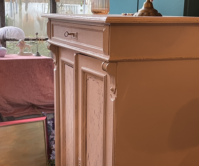 Vertiko / Kommode / antik handcoloriert Rosa Craquelé