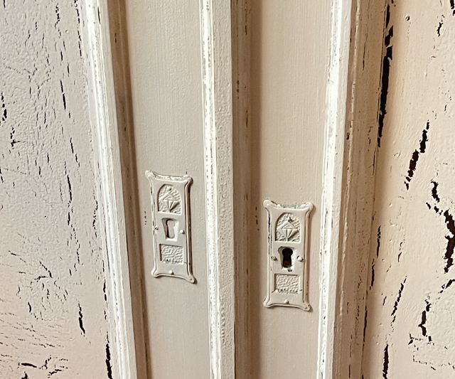 Vertiko aus Holz handcoloriert mit Patina Rosa