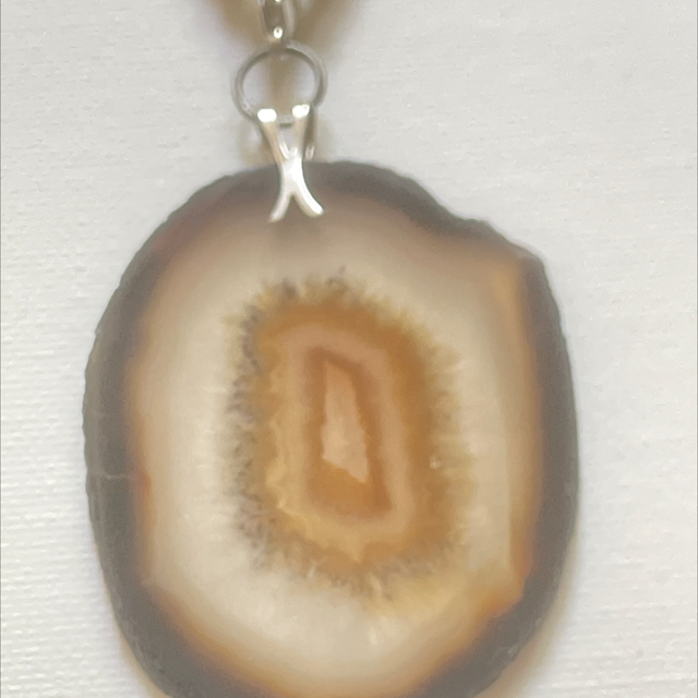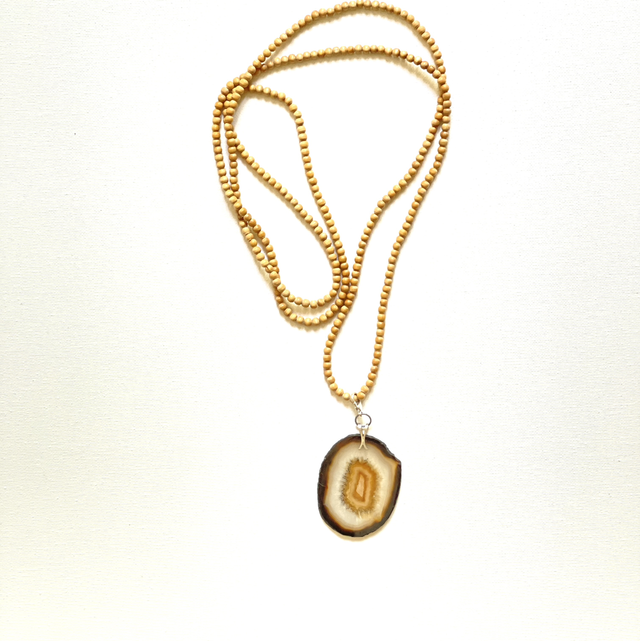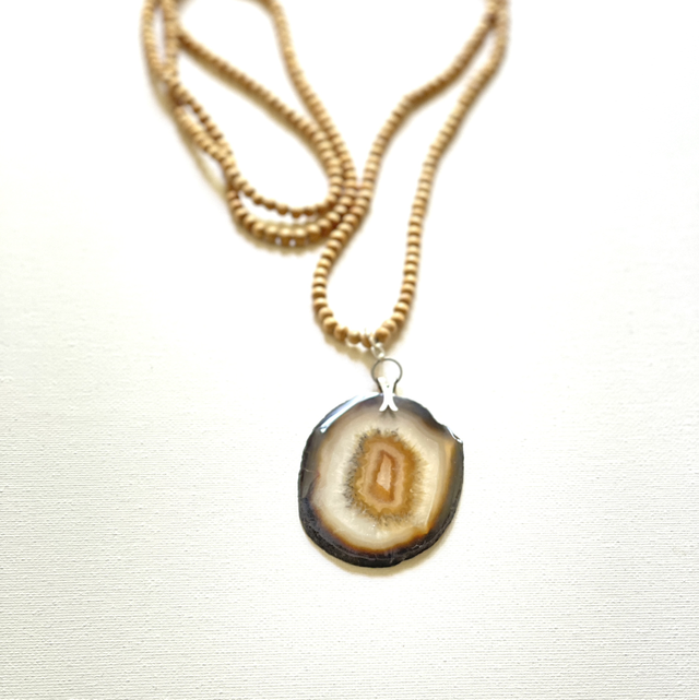 Vintage Achat Scheibe an Holzperlen Kett