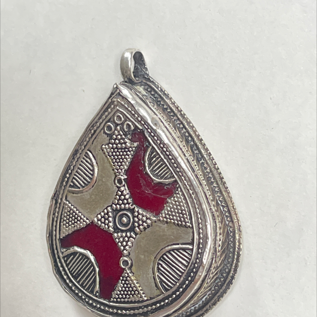Silber Kettenanhänger Berberschmuck traditionell ( nicht gestempelt) Tropfenform Tribal Art B: 4 cm H: 5 cm