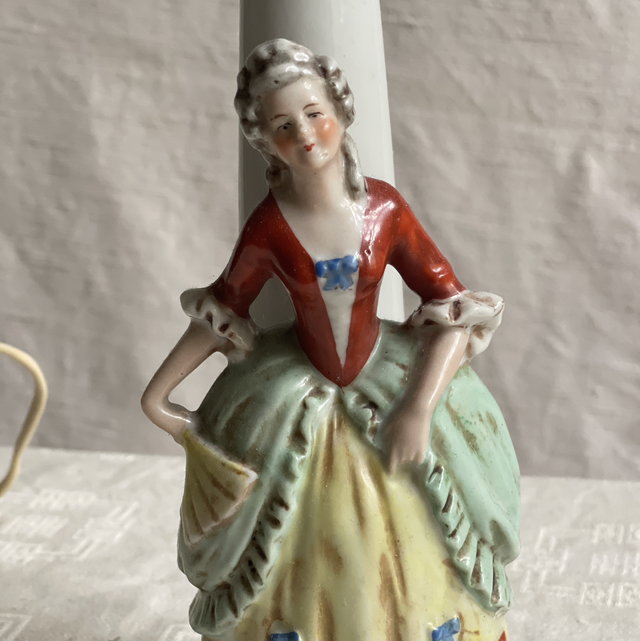 Antike Porzellanleuchte, Tischleuchte, Dame . Unikat.