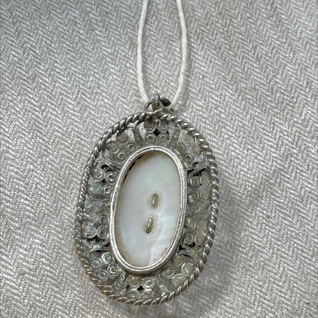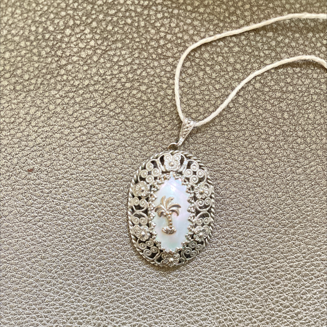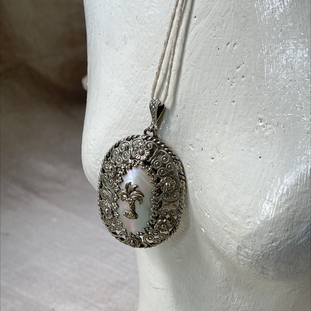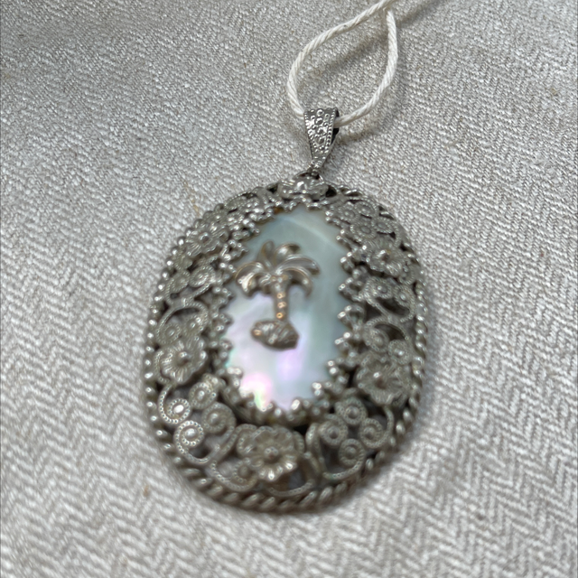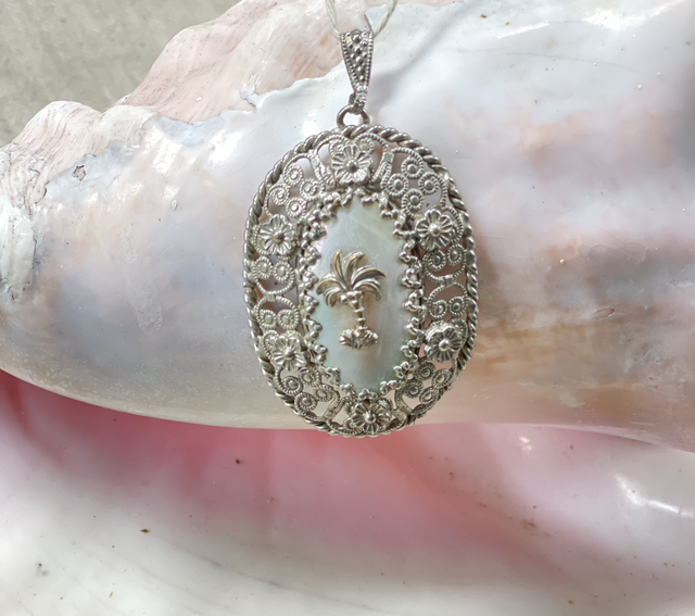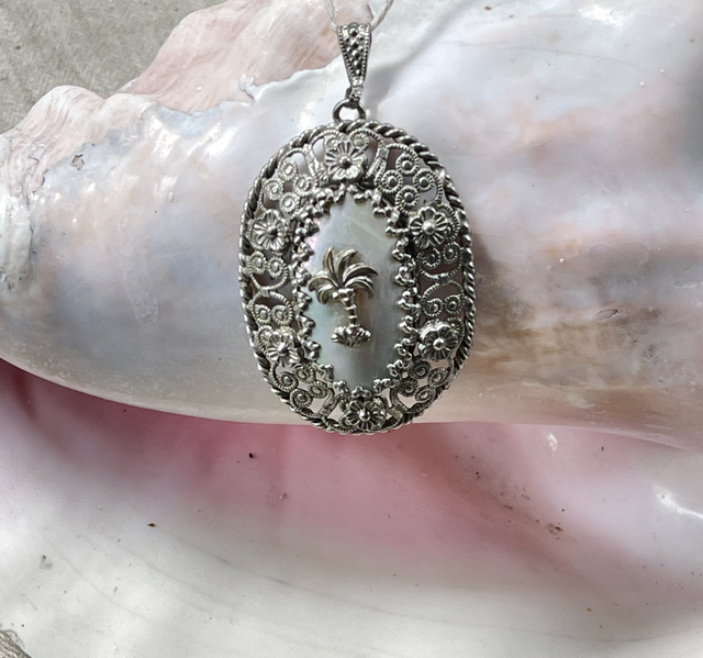 Perlmutt Kettenanhänger mit Palme und Blumen aus Metall