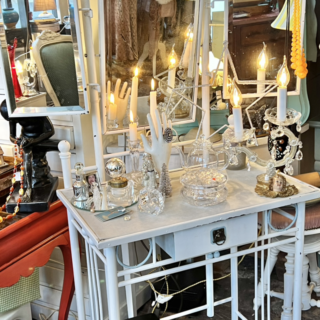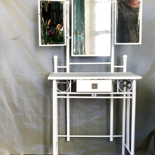 verstellbare Spiegel , Alles im shabby chique style, Metall und die Arbeitsplatte hat eine Stoffauflage. #Makeupdresser