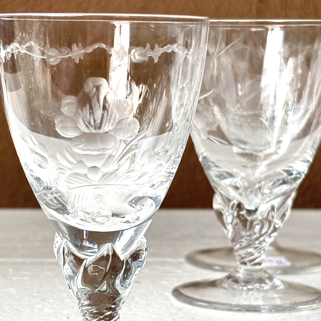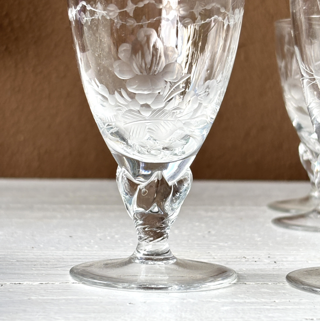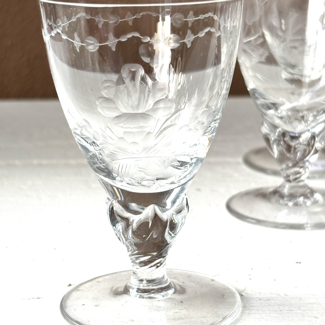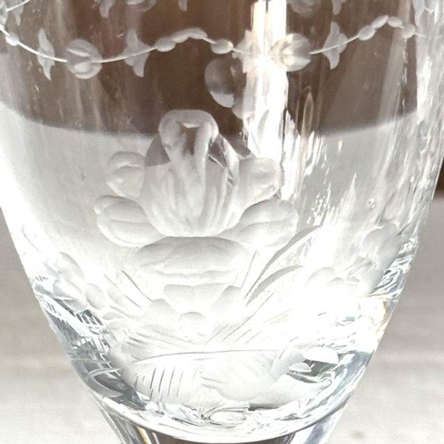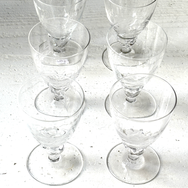 Set von 6 englischen Sherry / Portwein / Gläsern mit geätzen Motiven wie Blumen und Blättern. Sehr besondere Glasart.
