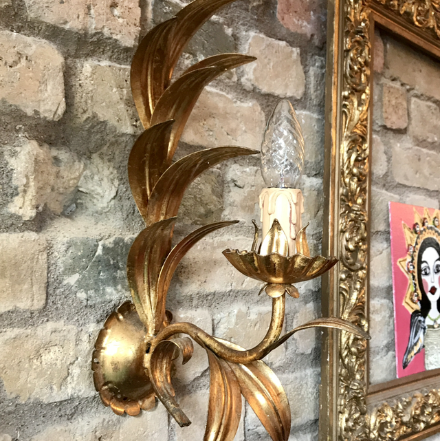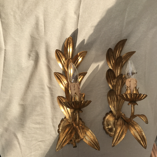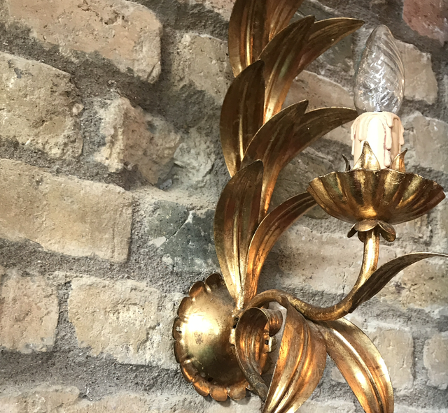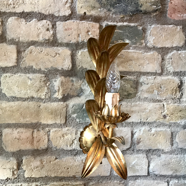 Vintage Wandleuchter mit Blättern, feuervergoldet