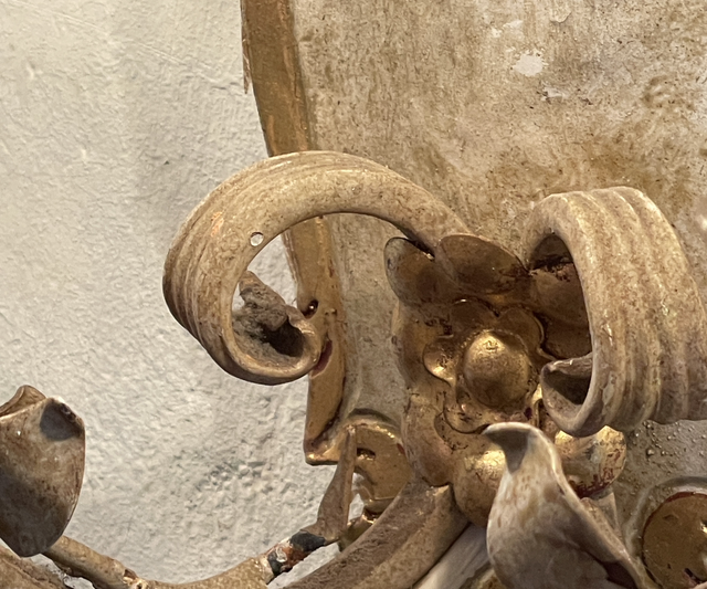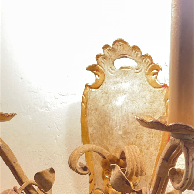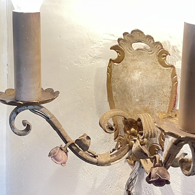 Vintage Leuchte geschmiedet und lackiert mit Rosen und Ornamenten.