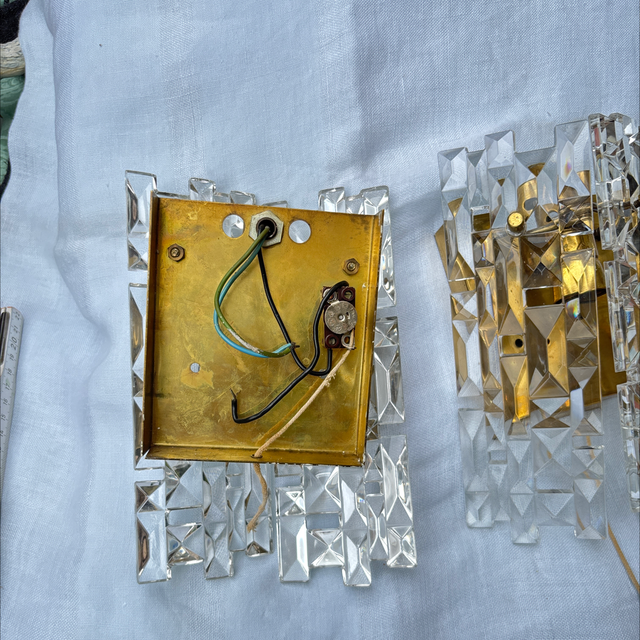 Mid-Century Wandleuchter Paar aus Messing und Glas von Kinkelday