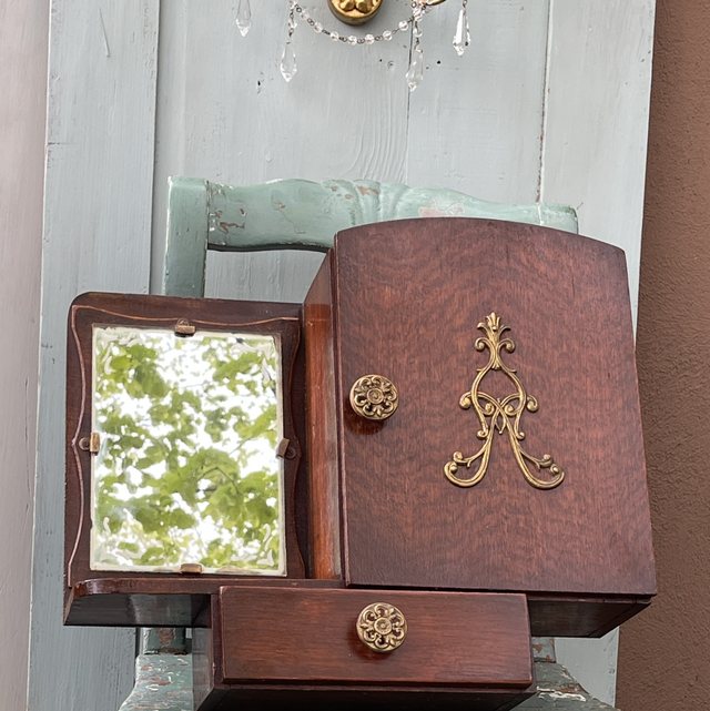 Antiker Wandschrank/ Vitrine mit Schublade und Tür, Spiegel aus der Biedermeierzeit ca. von 1860 Jh.