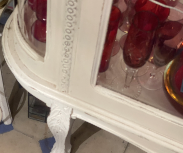 Weiße antike Vitrine mit Glastüren