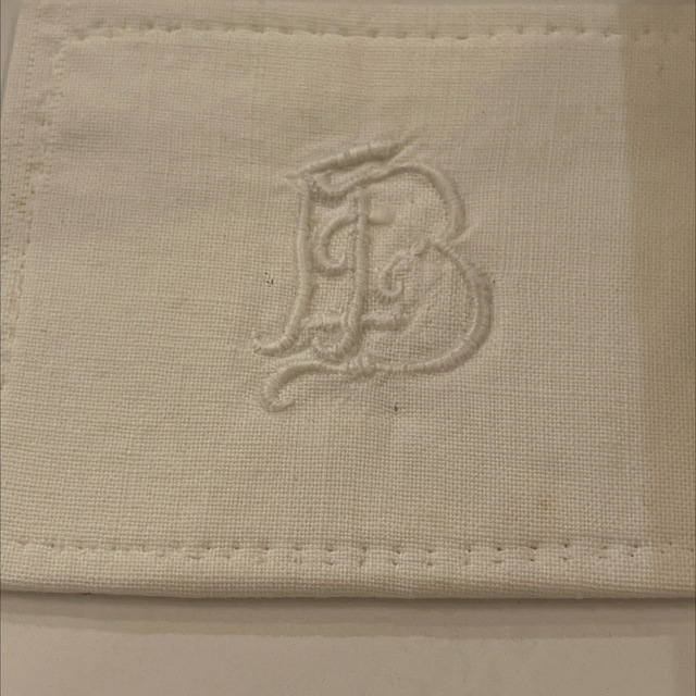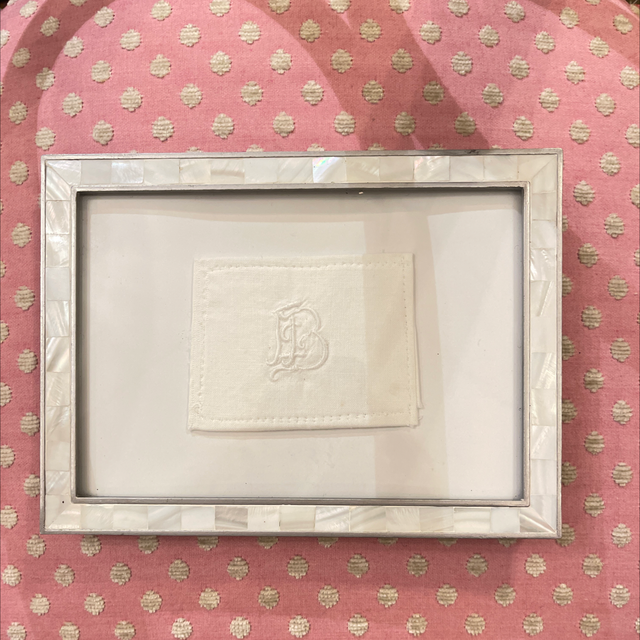 Weiße Initialien gestickt mit Perlmuttrahmen