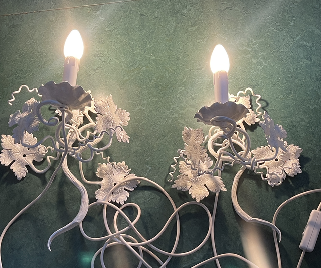 Weiße, geschmiedete Wandlampen aus Blättern die an Wein erinnern mit Schalter und langem Kabel und Stecker 👌 B: 28 cm H: 40 cm T: 24 cm